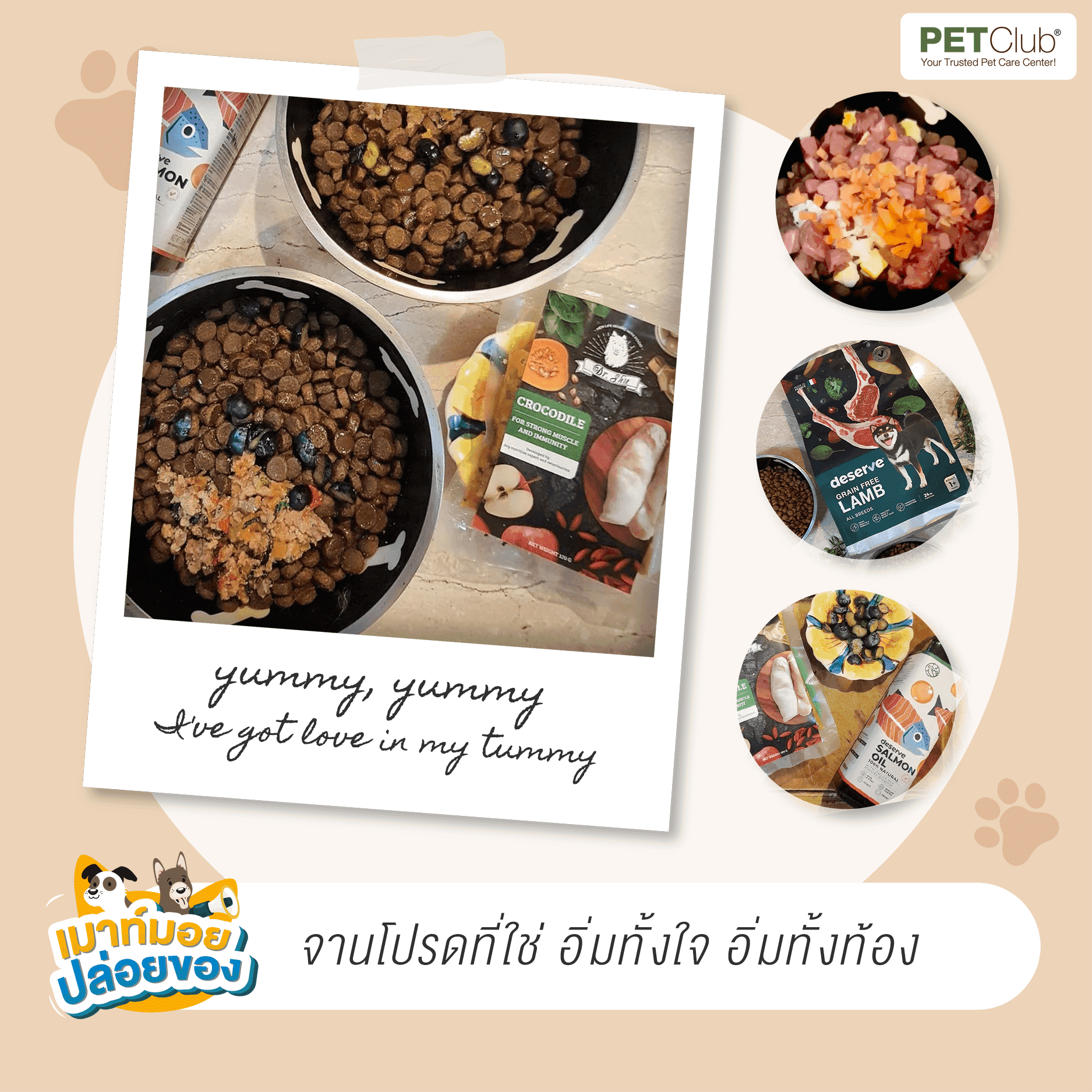 A: เด็ก ๆ ทานอาหารเม็ดยี่ห้อ Blackhawk รสแกะ เสริมด้วยน้ำมันปลาแซลมอน deserve Salmon Oil ท็อปด้วย เนื้อวัว เนื้อแกะ ตับ และผลไม้ แล้วแต่ละวันค่ะ