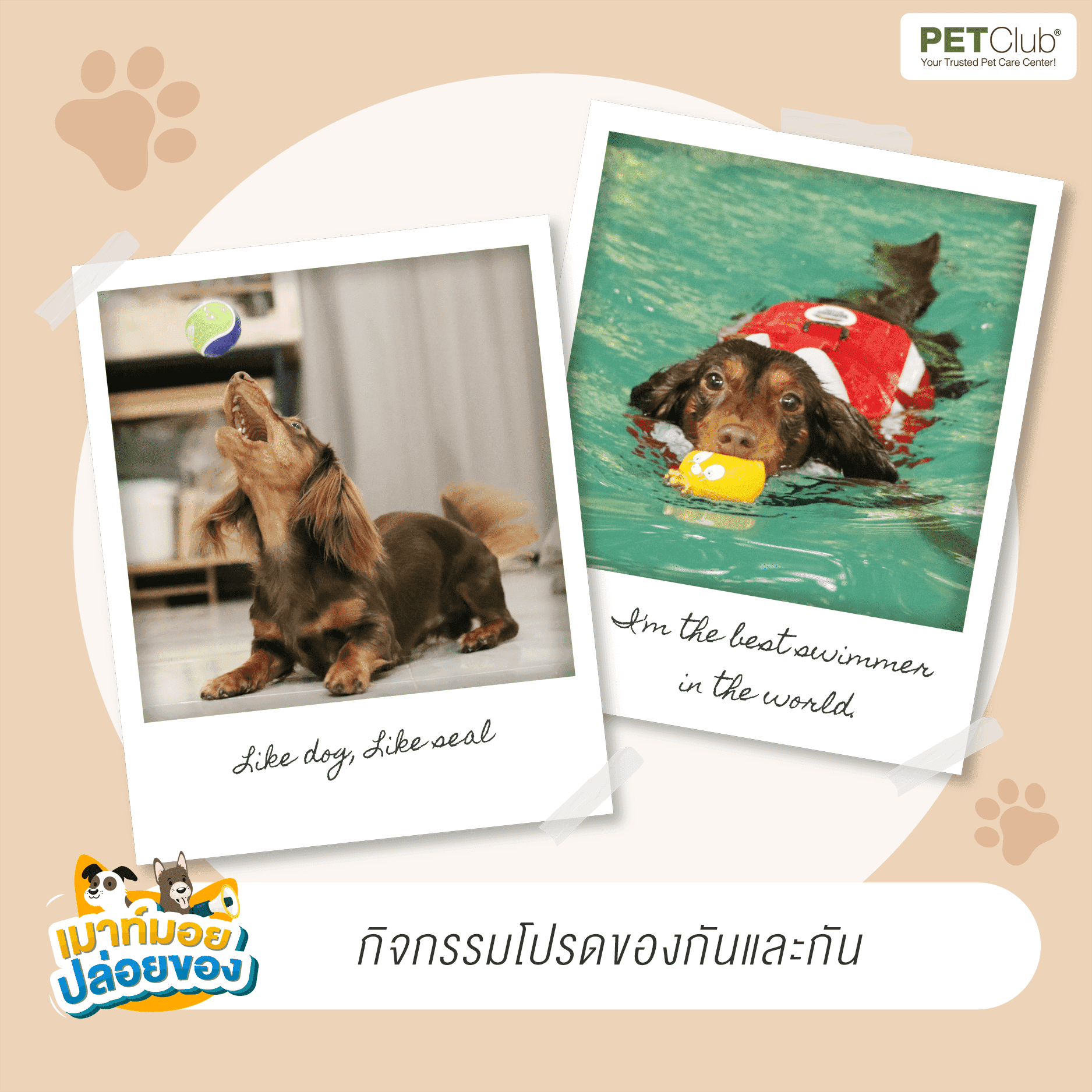 ถ้าเป็นวันที่ได้ออกไปข้างนอก แม่ก็จะเลือกพาเทดดี้ไปว่ายน้ำค่ะ ให้เทดดี้ได้ใช้พลังงานที่ล้นเหลือไปกับการออกกำลังกาย และพ่อกับแม่ก็จะทำหน้าที่เชียร์ลูกอยู่ข้างสระค่ะ (จุดนี้แม่เริ่มไม่แน่ใจแล้วว่าเทดดี้หรือพ่อแม่เหนื่อยกว่ากัน) แต่ที่รู้ ๆ คือ พี่เลี้ยงเทดดี้สบายสุดค่ะ ไม่ต้องลงน้ำ แค่โยนบอล ๆ แค่นี้เทดดี้ก็ว่ายเอามาคืนเองค่ะ นอกจากว่ายน้ำ พ่อก็จะขับรถพาเทดดี้ไปตาม Pet Community ต่าง ๆ เพื่อให้เทดดี้ได้เข้าสังคม ได้เจอเพื่อน ๆ สี่ขาหลากหลายสายพันธุ์ และจบด้วยการวิ่งหนีสาว ๆ ค่ะ