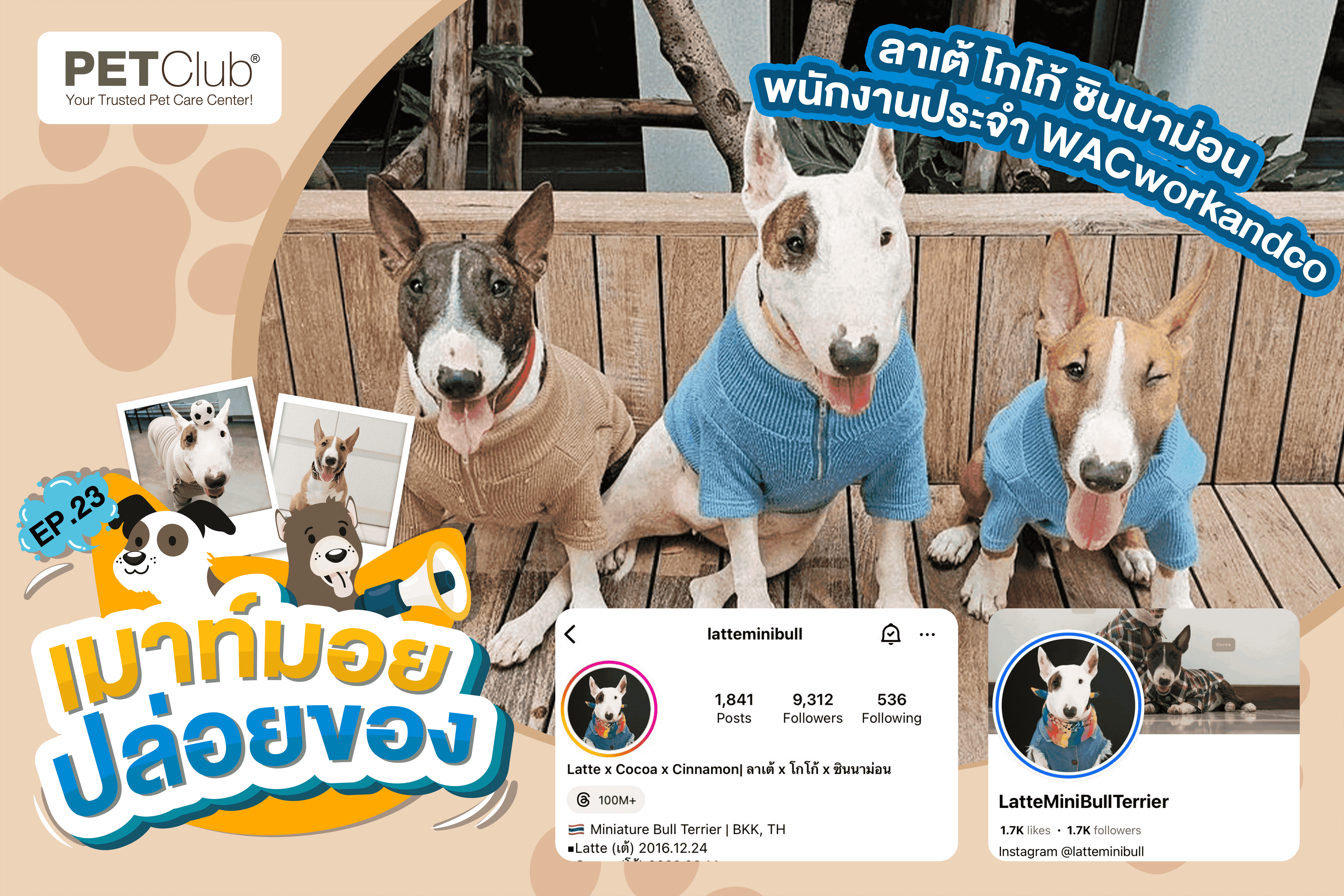 ใครเคยอ่านการ์ตูนวัยเด็กเรื่อง BOW WOW บ๊อก บ๊อก กันบ้าง? วันนี้เราจะพามาพบกับสองสาว และหนึ่งหนุ่มน้อย “บลูเทอร์เรีย” สายพันธุ์เดียวกันกับการ์ตูนเรื่องนี้เลย ใครที่อยากส่องความน่ารักของน้องๆ สามารถติดตามได้ที่ Facebook: LatteMiniBullTerrier IG: latteminibull และ wac_workandco (ไอจีร้าน)