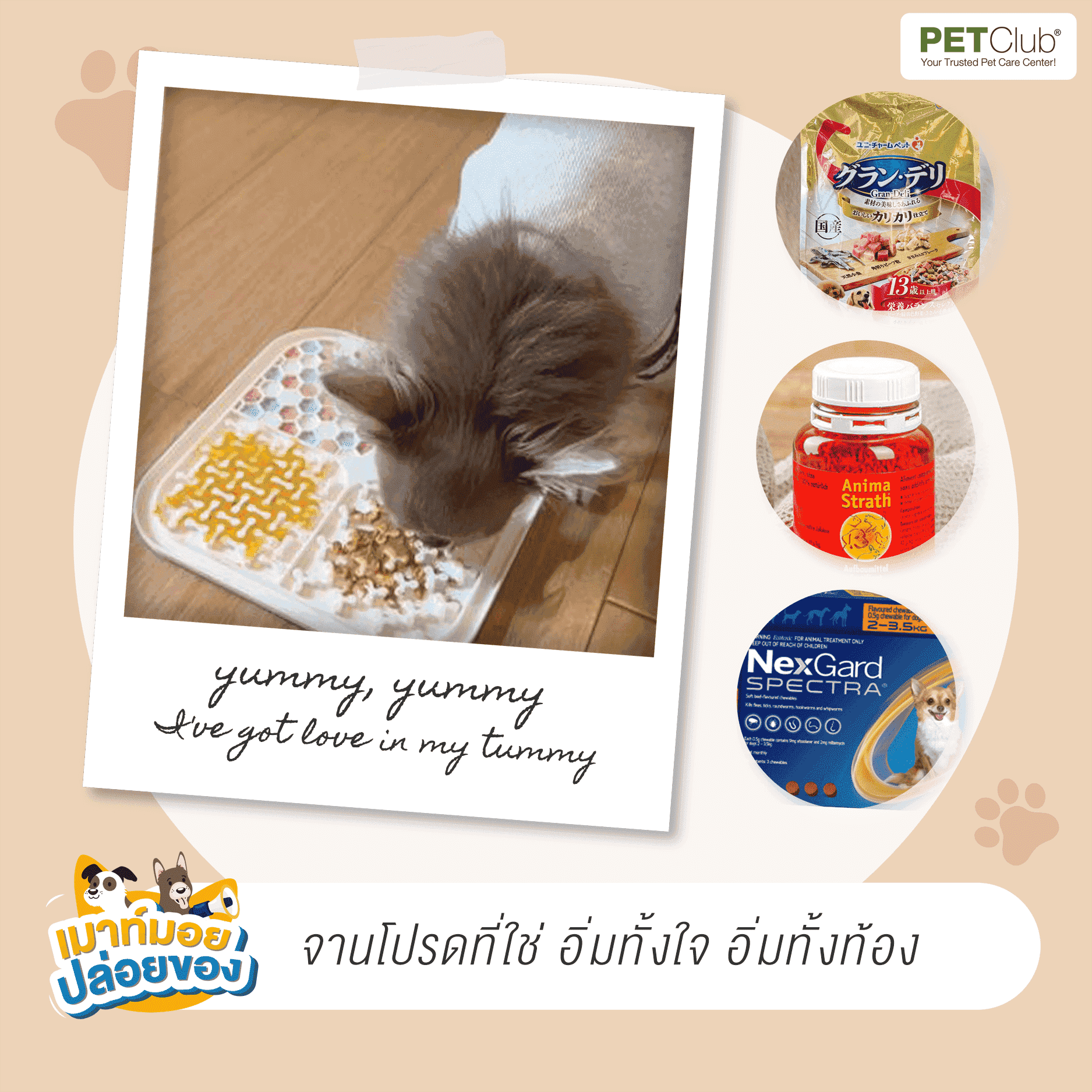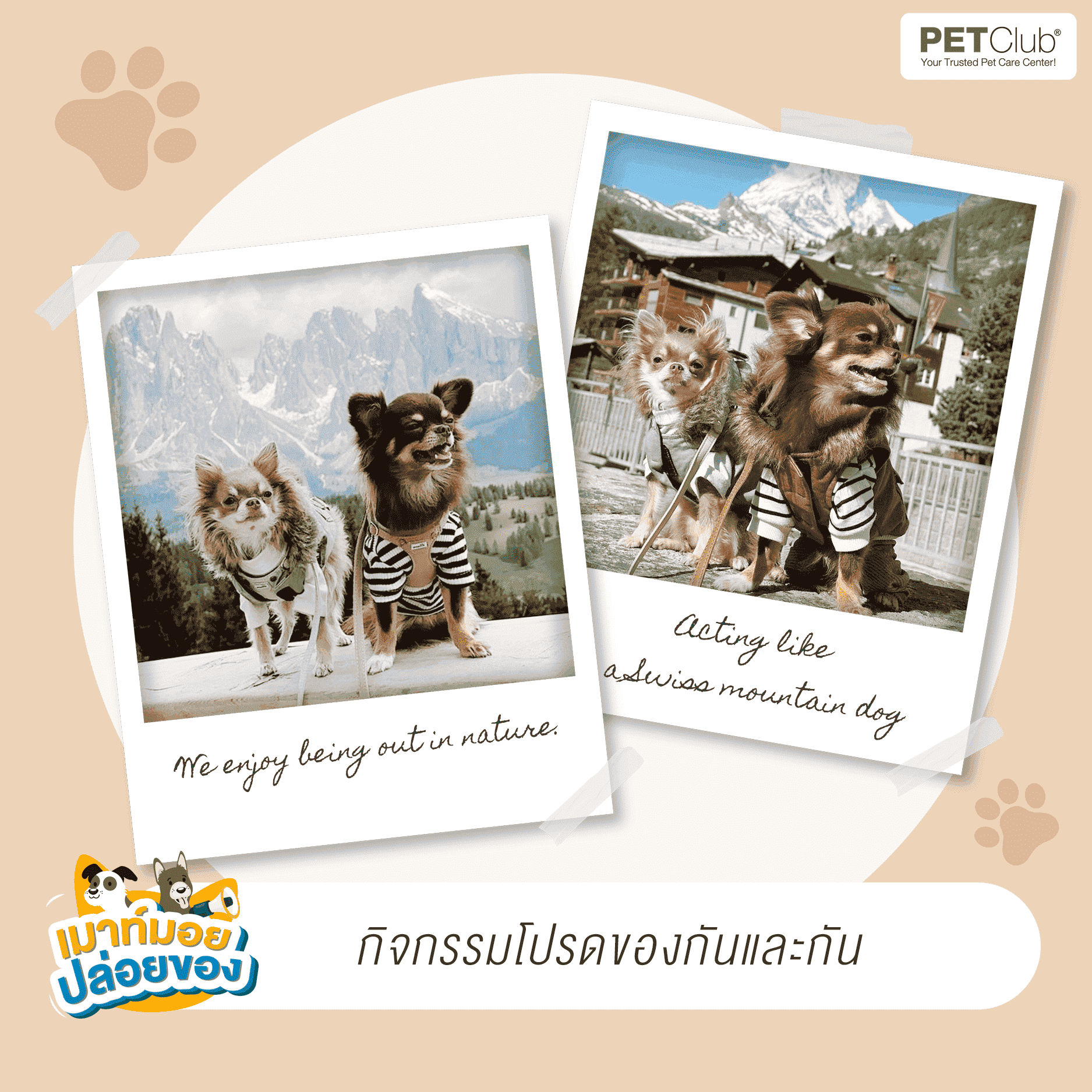 A: กิจกรรมที่พาน้องไปทำบ่อย ๆ คือเดินออกกำลังกาย ว่ายน้ำ หรือไปเที่ยวสถานที่ต่าง ๆ ที่เป็น Pet friendly ทั้งในและต่างประเทศค่ะ เด็ก ๆ ชอบเปลี่ยนที่นอนและชอบไปสถานที่ใหม่ ๆ มาก ๆ ส่วนถ้าวันไหนอยู่บ้านไม่ได้ไปไหน จะใช้พวก lick mat หรือ snuffle mat พวกของเล่นซ่อนขนมให้น้องเล่นแทนค่ะ