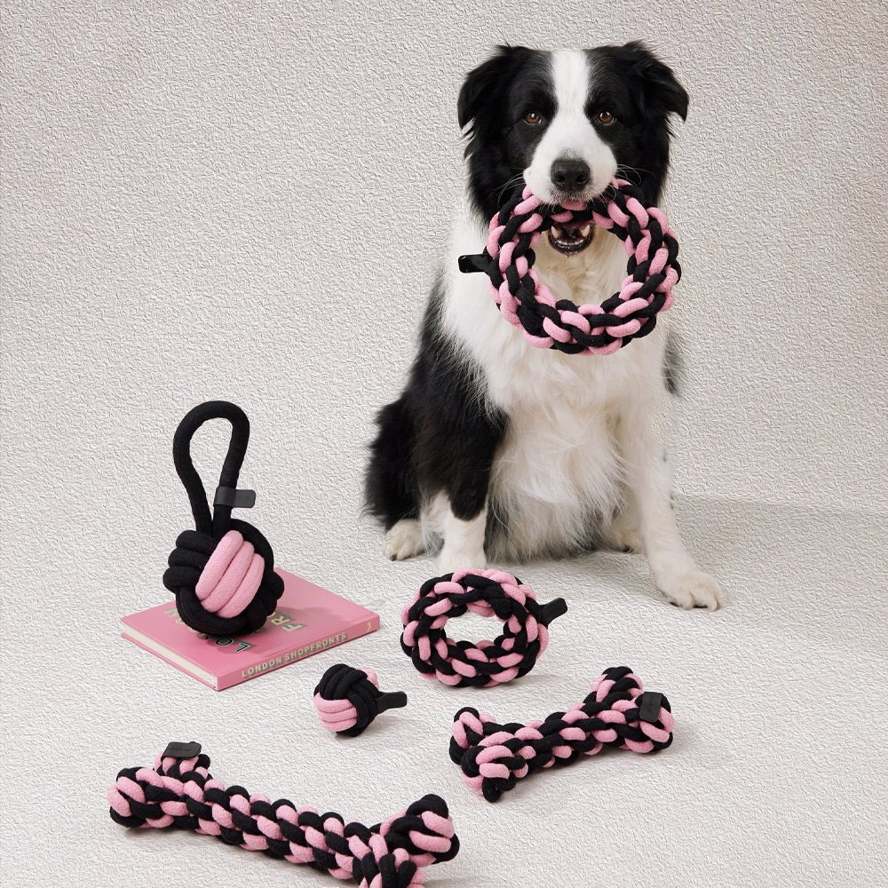 Crafted from recycled t-shirts, these toys are gentle on your dog’s teeth and gums. The bright pink and black design adds a stylish touch, while the variety of shapes. Including bones, loops, knots, and rings, keeps your pup entertained and mentally stimulated.